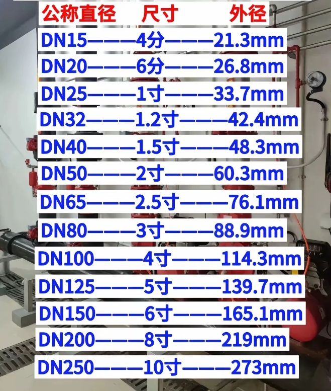 - DN40:公称内径为40毫米,外径为48.3毫米。