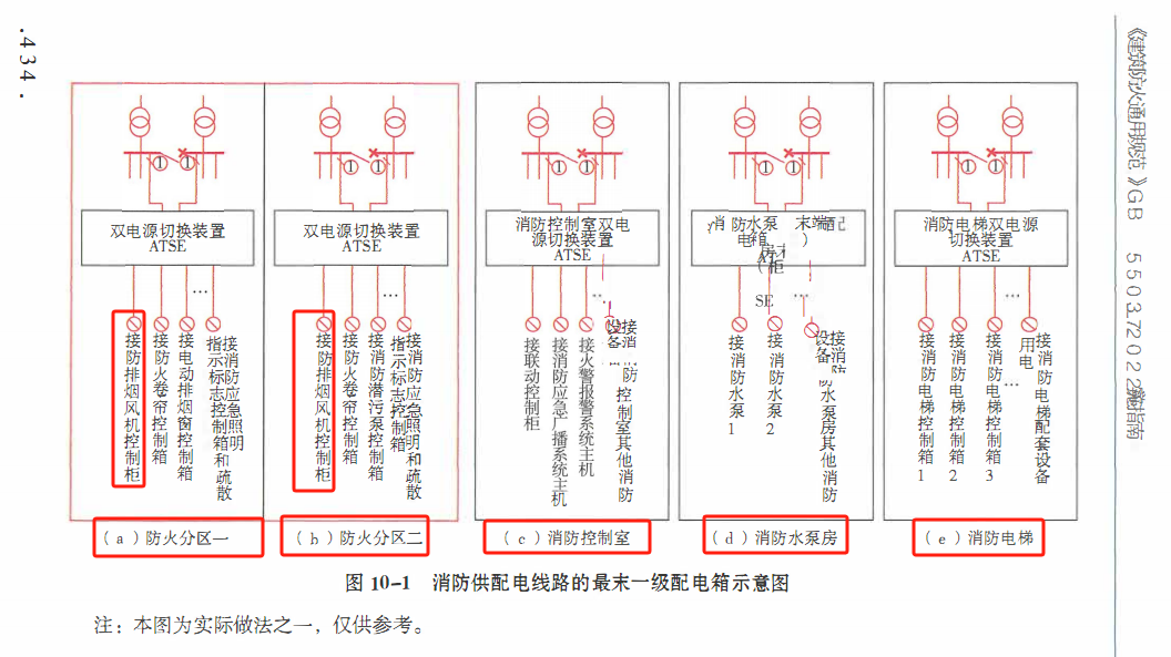 PS:《通用规范》要求与《民用建筑电气设计标准》一致。并且对于大家有争议的“防烟和排烟机房“室内是否做自动切换装置,在正式条款中,单独列出一句话来描述。并且在《建筑防火通用规范》实施指南中,又单独列了一张示意图。