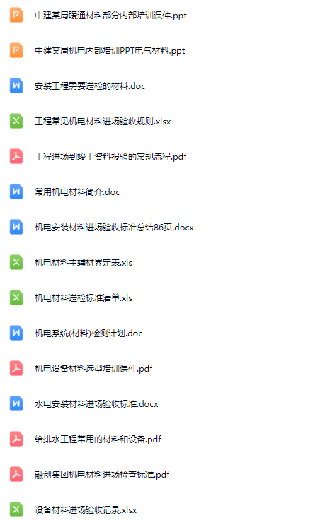 常见机电材料选型、进场验收标准合集