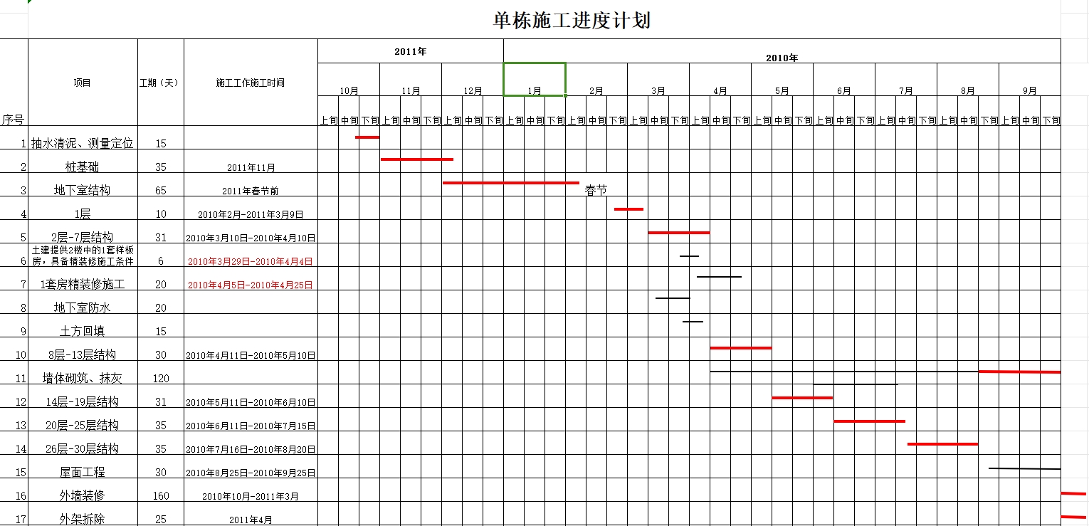 施工进度计划横道图模板(63套)