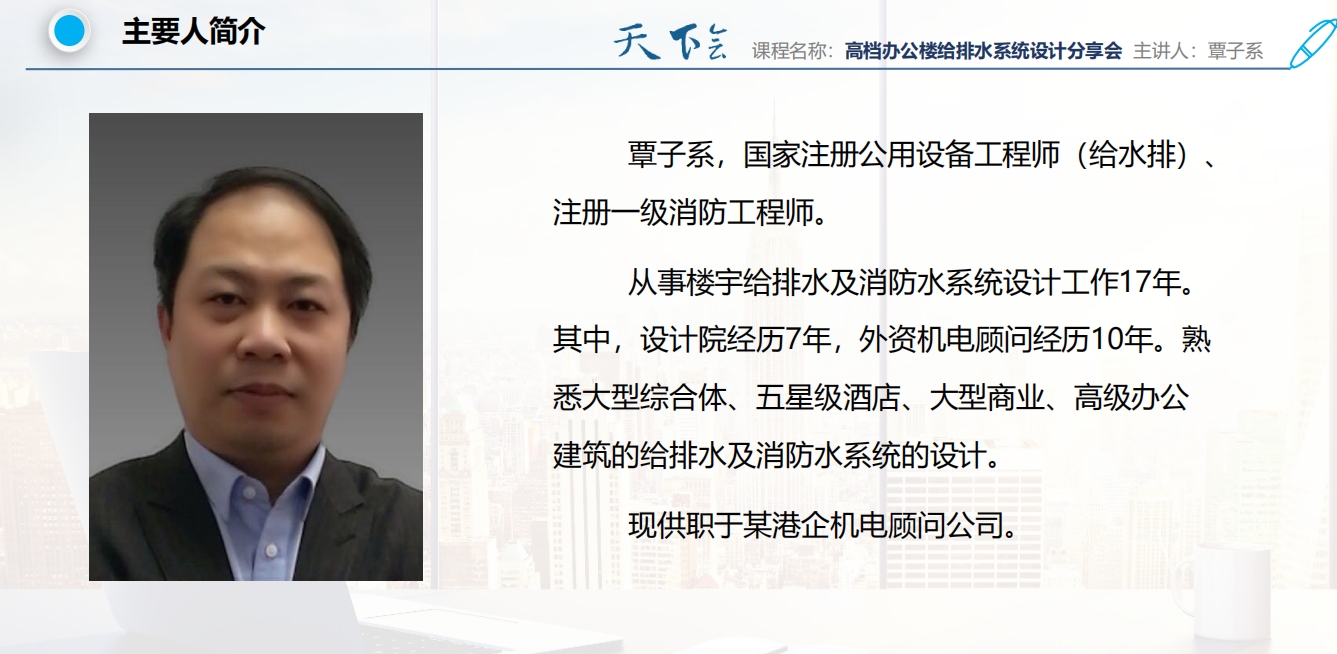 天下会第45讲|高档办公楼给排水系统设计分享会